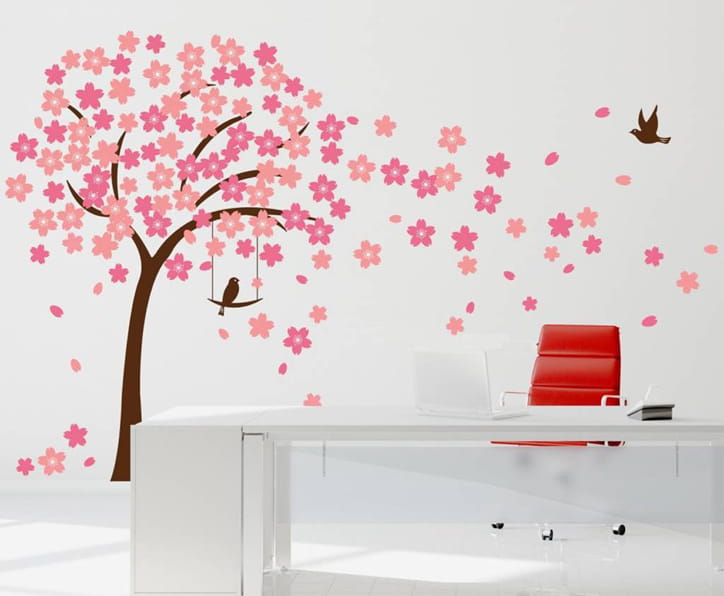 Naklejka na ścianę drzewo brązowe z różowymi liściami rozmiar XXL