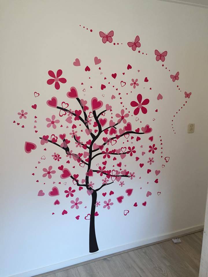Naklejka na ścianę drzewo brązowe z różowymi liściami rozmiar XXL (1)