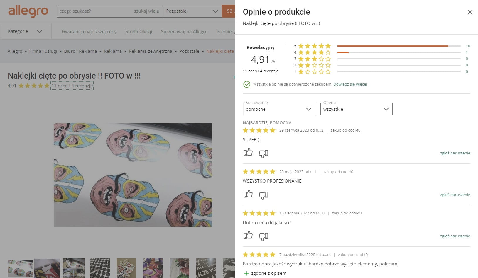 Wydruk oraz wycięcie zalaminowanych naklejek w dowolnym kształcie i ilości na powierzchni 1m2.