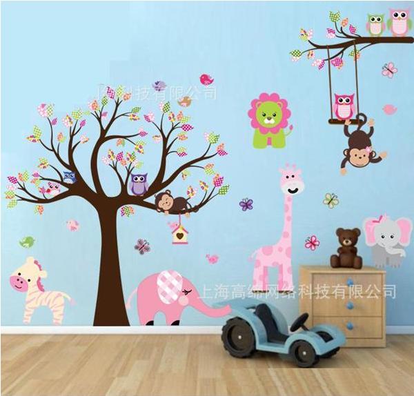 Naklejki na ścianę drzewo zwierzęta, trzy rozmiary do wyboru.